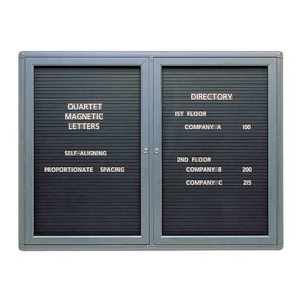 Double Glass Magnetic Message Board, Board Material Magnetic/Metal, Board Color Black, Board Frame Material Aluminum, Width 48 in, Height 36 in, Frame Color Gray, For Use Indoors, Includes Mounting Hardware