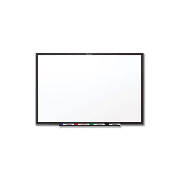 Total Erase dry-erase board with durable surface that resists ghosting and staining and erases cleanly. Best for moderate use in spaces with regular traffic. Frame color complements virtually any dcor. Mount vertically or horizontally with included hardware. Includes marker tray and 1 Quartet dry-erase marker. Black Aluminum Frame. Board Type: Dry Erase; Board Width: 96in; Board Height: 48in; Surface Material: Total Erase.