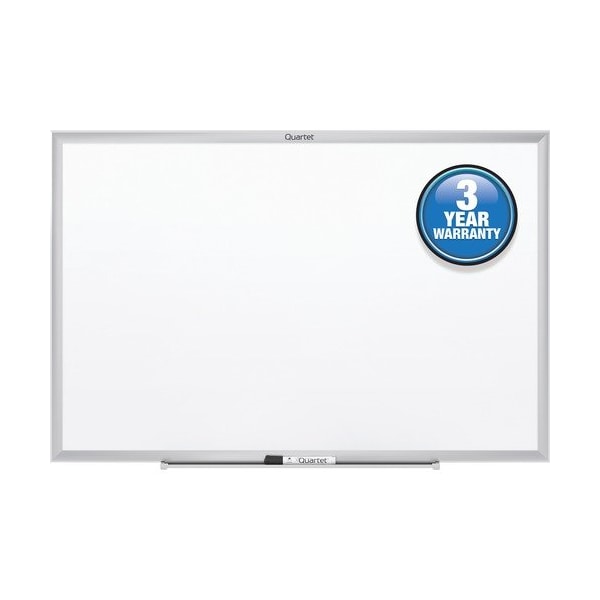 Total Erase dry-erase board with durable surface that resists ghosting and staining and erases cleanly. Best for moderate use in spaces with regular traffic. Frame color complements virtually any decor. Mount vertically or horizontally with included hardware. Includes marker tray and 1 Quartet dry-erase marker. Silver Aluminum Frame. Board Type: Dry Erase, Board Width: 96'', Board Height: 48in, Surface Material: Total Erase.