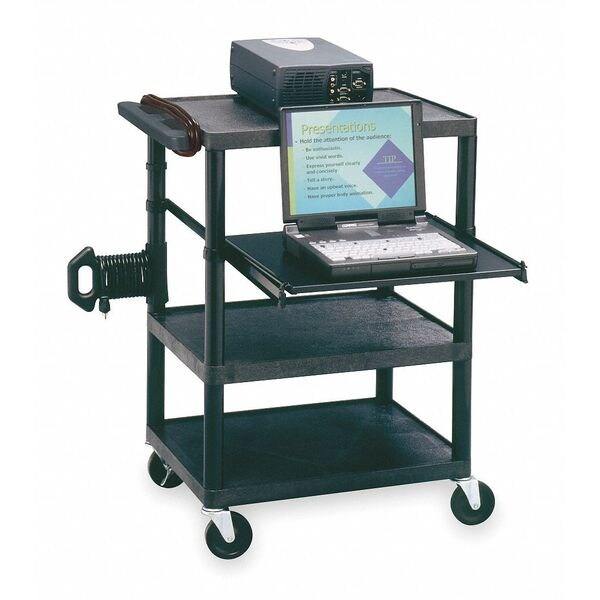 Projector Cart, Material Plastic, Number of Shelves 3, Caster Type (4) 3 in Swivel Casters (2 Locking), Standards Power Strip Is UL And CSA Listed, Color Gray, Number of Adjustable Shelves 1