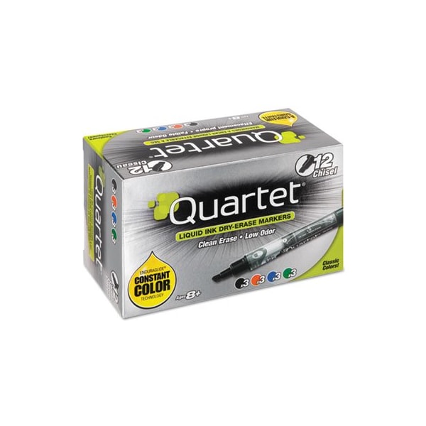 Liquid-ink dry-erase markers continuously deliver consistent, smooth and bold color on any dry-erase board surface. The unique, patented three-chamber design maintains ink flow, and the see-through ink gauge prevents you from running on empty. The low-odor, non-toxic, quick-drying ink erases cleanly. Marker Ink Type: Dry Erase; Marker Tip Type: Chisel; Marker Tip Size text: Broad; Marker Colors: Assorted.