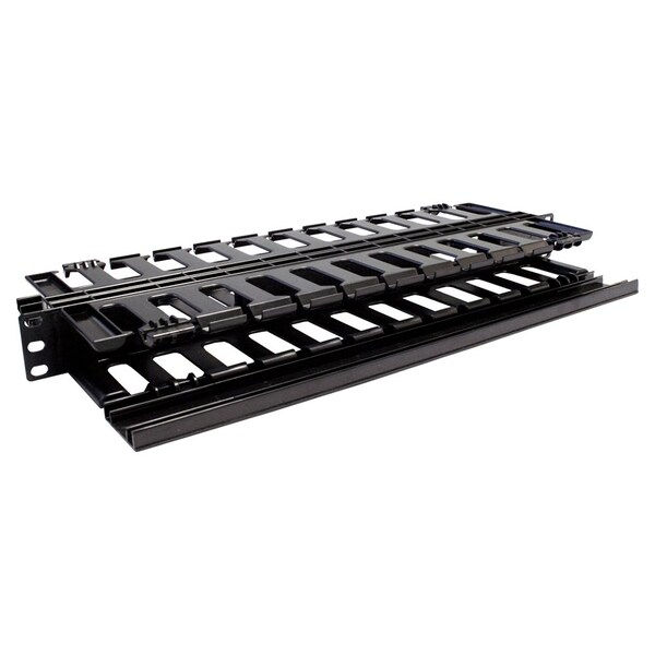 Horizontal Dual Large Finger Duct With Hinged Covers, 60-110 Cables, 1U, 19", Black