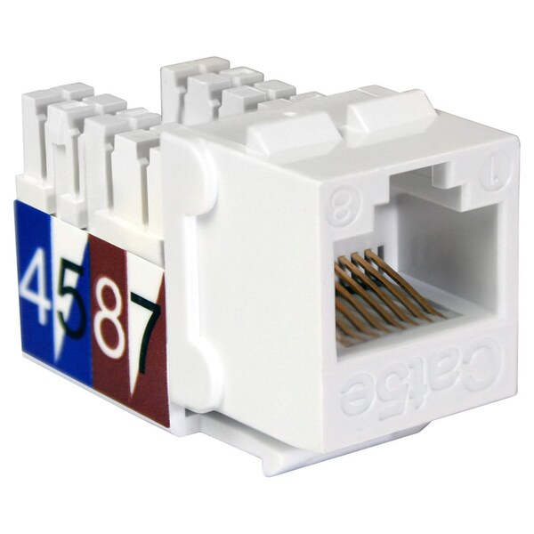 These Quest Cat5E keystone jacks are designed with 90 degree 110 IDC termination and have a slim-style body to fit in high-density keystone patch panels, surface mount boxes and faceplates.