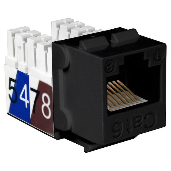 These Quest Cat6 keystone jacks are designed with 90 degrees 110 IDC termination and have a slim-style body to fit in high-density keystone patch panels, surface mount boxes, and faceplates.
