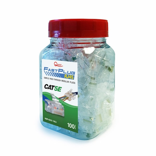 Fastplug Rj45 Pass-Through Modular Plugs, 100Pk - Cat5E, 8P8C