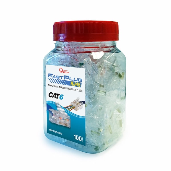 Fastplug Rj45 Pass-Through Modular Plugs, 100Pk - Cat6, 8P8C