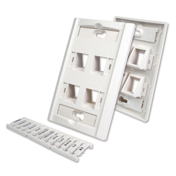 Keystone Wall Plate W/ Icon Slots & Tabs, White - 4 Ports, Angled-Port