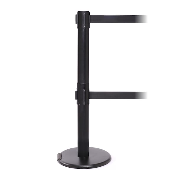 RollerPro is the first belt barrier offering the convenience of a roller base at an affordable price. This stanchion can be easily moved without heavy lifting by tilting the post onto its discrete 4.5” roller and pushing using the post head. RollerPro stanchions offer the durability of steel construction and a heavy duty cast iron base. The long service life of these stanchions makes them ideal, ideal for high traffic areas or where the stanchions are moved frequently. All RollerPro stanchions feature a braking system for slow, safe belt retraction and a locking belt end to prevent accidental release. A full coverage floor protector to prevent floor damage is standard. RollerPro’s 4 way connectivity allows belts from three other stanchions to be connected in line or at right angles so complex queue systems can be created. RollerPro features the longest belt options in its class. At 11’ this model’s belt is 45% longer than the industry standard 7.5ft. Longer belts require fewer stanchions saving on purchase cost and set up time.