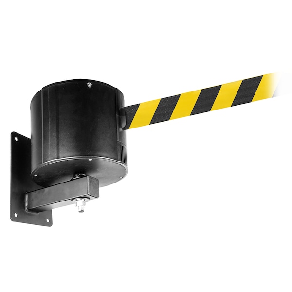 The WallPro 750 is a wall mounted retracting belt barrier designed for restricting access in very long span applications such as warehouses, machine guards and airport tarmacs. The belt mechanism is protected by a heavy-duty housing designed for outdoor use and is supplied with a wall mounting bracket for attachment to any vertical surface. The mounting bracket is adjustable allowing the belt unit to be set so the belt can be pulled out at any angle.