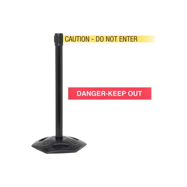 WeatherMaster Xtra Retractable Belt Barrier, 40in Black Post, 11' Red inDanger-Keep Outin Belt
