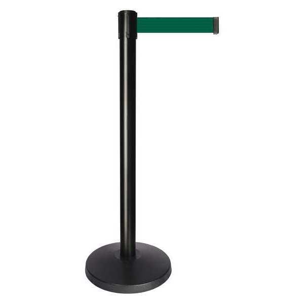 Barrier Post with Belt, Maximum Overall Height 40 in, Legend No Legend, Legend Color Not Applicable, Number of Belts 1, Belt Length 10 ft, Belt Width 2 in, Belt Color Dark Green, Belt Pattern No Pattern, Post Color Black, Product Type Stanchion, Includes Universal Cassette Clip, Minimum Overall Height Not Applicable, Post Diameter 2 1/2 in, Post Material Metal Alloy, Post Finish Powder Coated, Base Type Basic, Base Diameter 14 in, Base Material ABS, Base Finish Powder Coated, ADA Compliance No