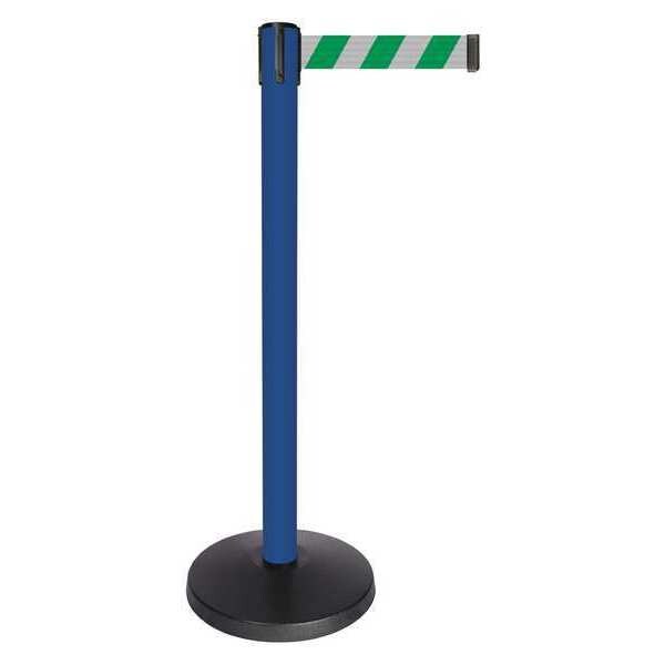 Barrier Post with Belt, Maximum Overall Height 40 in, Legend No Legend, Legend Color Not Applicable, Number of Belts 1, Belt Length 10 ft, Belt Width 2 in, Belt Color Green, Belt Pattern Chevron, Post Color Black, Product Type Stanchion, Includes Universal Cassette Clip, Minimum Overall Height Not Applicable, Post Diameter 2 1/2 in, Post Material Metal Alloy, Post Finish Powder Coated, Base Type Basic, Base Diameter 14 in, Base Material ABS, Base Finish Powder Coated, ADA Compliance No