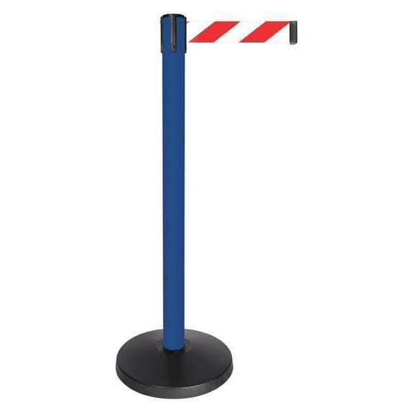 Barrier Post with Belt, Blue, 10 ft Length, 40 in Post Height, No Legend, Powder Coated
