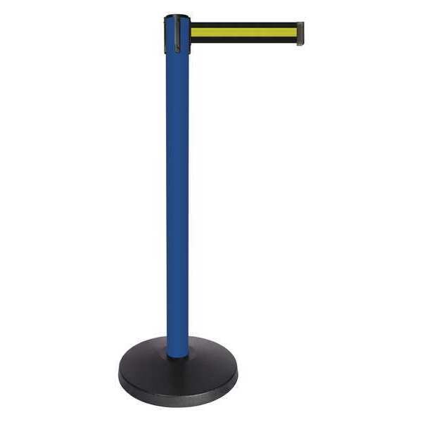 Barrier Post with Belt, Blue, 10 ft Length, 40 in Post Height, No Legend, Powder Coated