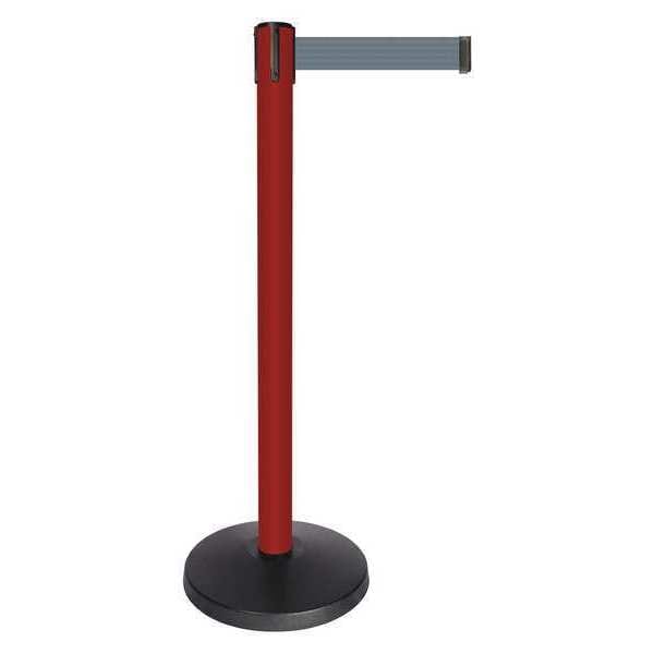 Barrier Post with Belt, Maximum Overall Height 40 in, Legend No Legend, Legend Color Not Applicable, Number of Belts 1, Belt Length 10 ft, Belt Width 2 in, Belt Color Gray, Belt Pattern No Pattern, Post Color Red, Product Type Stanchion, Includes Universal Cassette Clip, Minimum Overall Height Not Applicable, Post Diameter 2 1/2 in, Post Material Metal Alloy, Post Finish Powder Coated, Base Type Basic, Base Diameter 14 in, Base Material ABS, Base Finish Powder Coated, ADA Compliance No