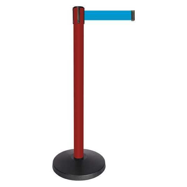 Barrier Post with Belt, Maximum Overall Height 40 in, Legend No Legend, Legend Color Not Applicable, Number of Belts 1, Belt Length 10 ft, Belt Width 2 in, Belt Color Light Blue, Belt Pattern No Pattern, Post Color Red, Product Type Stanchion, Includes Universal Cassette Clip, Minimum Overall Height Not Applicable, Post Diameter 2 1/2 in, Post Material Metal Alloy, Post Finish Powder Coated, Base Type Basic, Base Diameter 14 in, Base Material ABS, Base Finish Powder Coated, ADA Compliance No