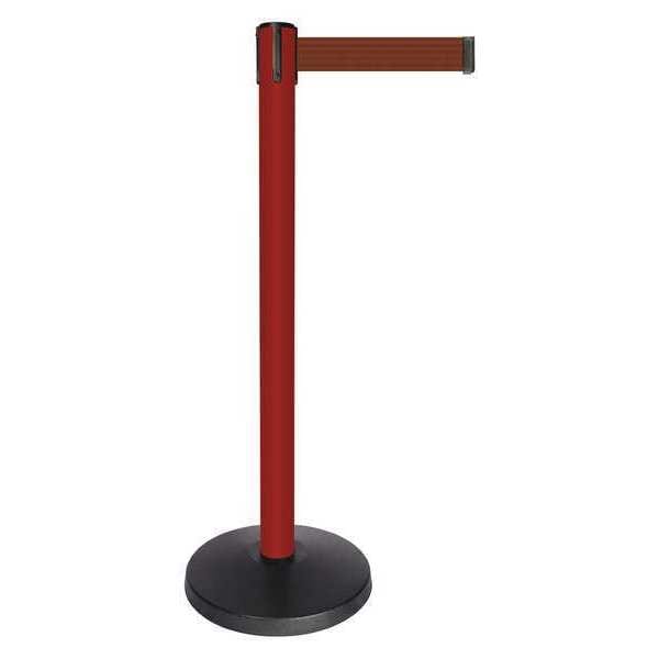 Barrier Post with Belt, Maximum Overall Height 40 in, Legend No Legend, Legend Color Not Applicable, Number of Belts 1, Belt Length 10 ft, Belt Width 2 in, Belt Color Brown, Belt Pattern No Pattern, Post Color Red, Product Type Stanchion, Includes Universal Cassette Clip, Minimum Overall Height Not Applicable, Post Diameter 2 1/2 in, Post Material Metal Alloy, Post Finish Powder Coated, Base Type Basic, Base Diameter 14 in, Base Material ABS, Base Finish Powder Coated, ADA Compliance No