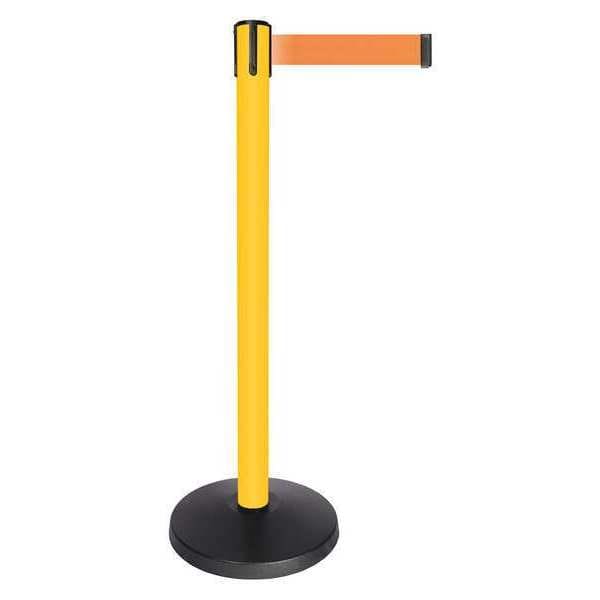Barrier Post with Belt, Maximum Overall Height 40 in, Legend No Legend, Legend Color Not Applicable, Number of Belts 1, Belt Length 10 ft, Belt Width 2 in, Belt Color Orange, Belt Pattern No Pattern, Post Color Yellow, Product Type Stanchion, Includes Universal Cassette Clip, Minimum Overall Height Not Applicable, Post Diameter 2 1/2 in, Post Material Metal Alloy, Post Finish Powder Coated, Base Type Basic, Base Diameter 14 in, Base Material ABS, Base Finish Powder Coated, ADA Compliance No