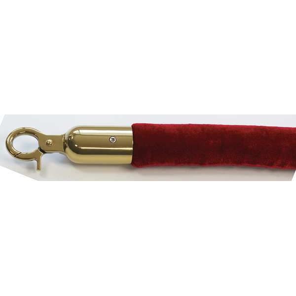 Barrier Rope, Rope Color Red, Overall Length 8 ft, Rope Diameter 1 1/2 in, Rope Material Velour, End Cap Style Snap End, End Cap Material Brass, End Cap Finish Polished Brass, Weight 2 lb, Compatible Post Manufacturer Part Number QWAY310, QWAY312, QWAY314