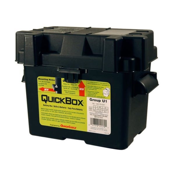 QuickBox U1 Standard Battery Box is made of impact resistant, durable plastic that will not rust or corrode in the presence of acid, gasoline, oil, salt, water, or chemicals.