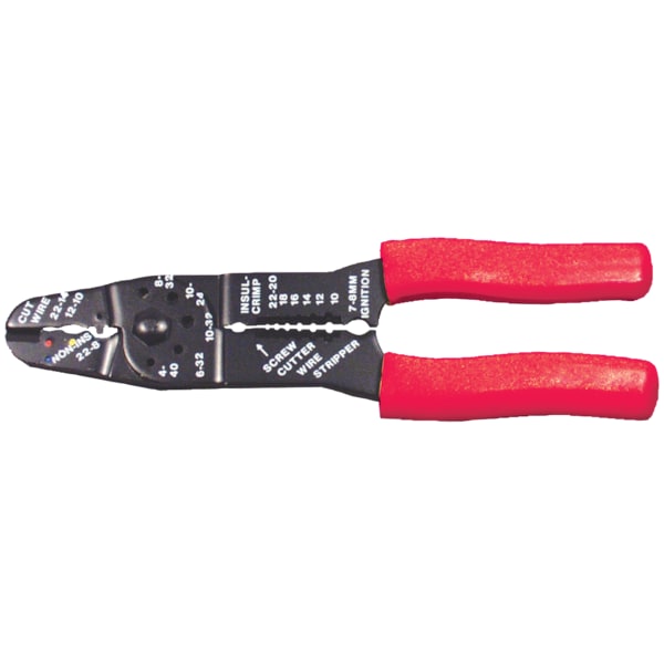 This crimping tool is ideal for working with primary wire. It has a total of six interchangeable dies, which means you can use it for various applications. The QuickCable 420193-001 Standard Crimp Tool is designed to work with primary wire sizes, including 22 to 10 gauge. This cutter and crimper can cut 4-40, 6-32, 10-24 and 10-32 bolts in addition to stripping insulation from 22 to 10 gauge wires. Its handles are ergonomically designed for ease of use and comfort. If you're looking for a reliable way to cut through your primary wire quickly and easily, the QuickCable 420193 Standard Crimp Tool is just what you need.