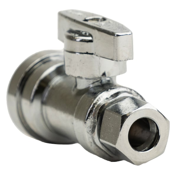 1/2in Push-to-Connect x 3/8in OD Comp Chrome Plated Brass Quarter-Turn Straight Stop Valve