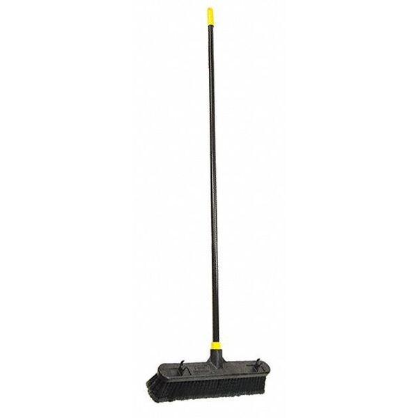 Push Broom, Broom Type Push Broom, Bristle Material PET, For Surface Texture Multi-Surface, Sweep Face 18 in, Bristle Length 3 1/8 in, Bristle Color Black, Block Material Plastic, Handle Length 60 in, Handle Material Steel, Handle Color Blue, Handle Connection Type Threaded, Chemical Resistant No, Tool Type Broom, Block Width 18 in, Acid Resistant No, Color Coding System No, Handle Diameter 1 in, Connection Thread Type Standard, Bristle Firmness Stiff