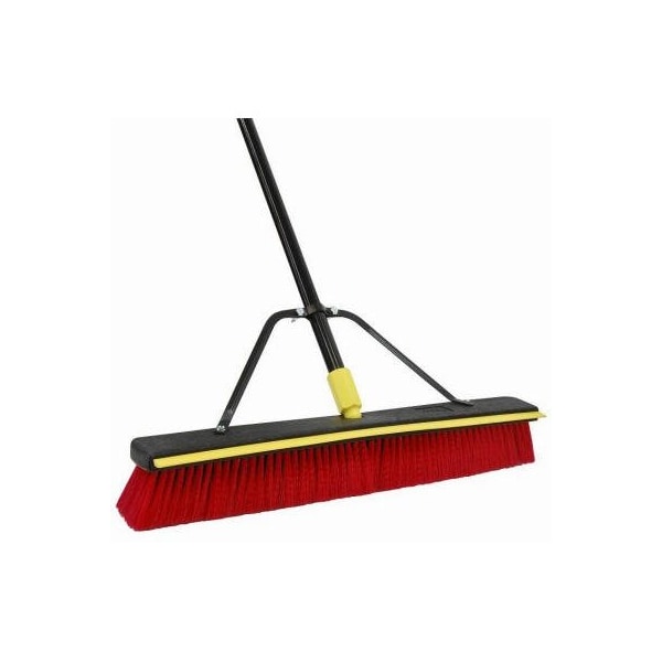 2 In 1, 24 Squeegee Push Broom With Tee Pee Brace, Soft Outer Fibers Stiff Inner Fibers For Sweeping Medium Textured Surfaces, 60 Powder Coated Steel Handle With Hang Up Feature, Heavy Duty Resin Block, Built In Professional Grade Squeegee