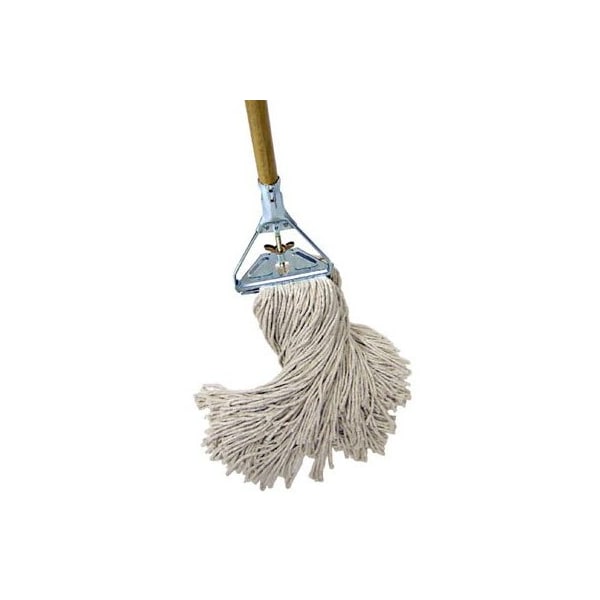 24 OZ, Heavy Duty Wet Mop, 56 Hardwood Handle, Galvanized Steel Wing Nut Mop Clamp, 100 32 Cotton Mop Head, Sewn On Cloth Headband