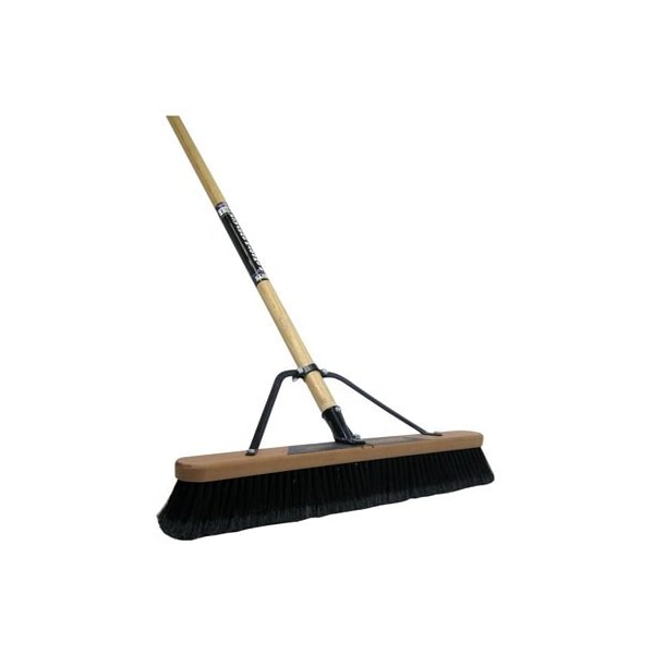 24, Soft Sweep Push Broom, Assembled With 12 Wide Steel Broom Brace, Soft Polypropylene Fibers With Split Tips For Fine Sweeping, 78 Thick, Solid Hardwood Block, Die Cast Connector Eliminates Loose Handles, Good For Smooth Indoor Surfaces, 118 x 60 Wood Handle