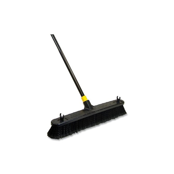 Quickly sweep away lightweight soil, sawdust, spackling powder and morethe Bulldozer Smooth Surface Pushbroom's flagged-profile brush is ideal for both indoor janitorial tasks and construction cleanup. Rugged, ultra-durable design features a heavy-duty resin block that wont warp, rot or crack and a powder-coated steel handle with an extended neck for extra lateral support. Soft, split-tip bristles. Convenient, removable clips attached to the block allow you to hang several blocks, separate from the handle, or several fully assembled brooms in a row, allowing for neat and organized storage. Application: Hard Floors; Indoor; Bristle Material: Split-Tip Horse-Hair; Bristle Length: 3in; Handle Material: Powder Coated Steel.