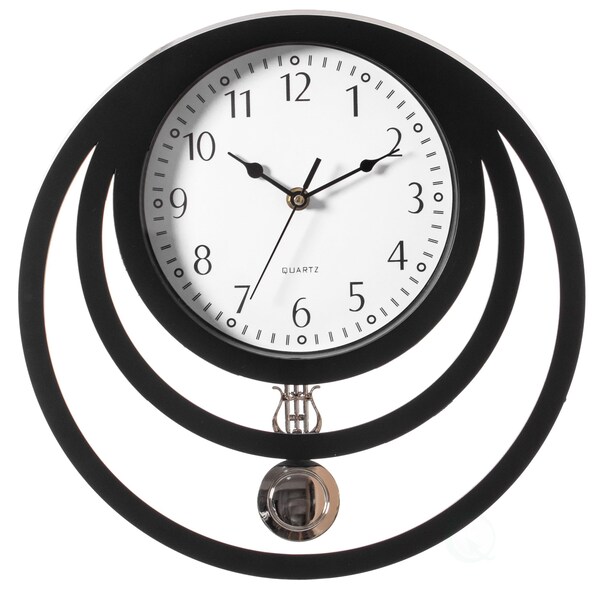 Decorative Modern Round Plastic Wall Clock with Circles, for Living, Kitchen, or Dining, Black (Discontinued)