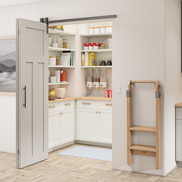 Want the rolling barn door hardware “look”, but have minimal space? Look no further! Bi-Fold Barn Door Hardware Kits give the pleasing aesthetic of normal barn door hardware but use only a portion of the space! It is perfect for hallway coat closets, bedroom closets, laundry closets, pantries, and so much more. The hardware is easy to install, comes in two different mount styles and three different rail lengths to fit your desired space. There is also a double-door hardware option available in the 6-ft. rail length! Save space without sacrificing style by purchasing your Bi-Fold Barn Door Hardware Kit today.