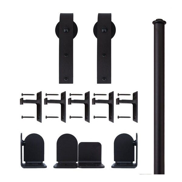 Bring the trendy yet timeless style of our premium-quality rolling barn door hardware to your home! The Quiet Glide round rail series has many styles that range from tastefully rustic to modern. There is a barn door hardware kit available for virtually any space! With movable brackets for easy, universal installation and sturdy construction that supports a maximum recommended 250 lbs., the Quiet Glide round rail hardware kit will be a practical and stylish addition to your home! (Door Not Included)