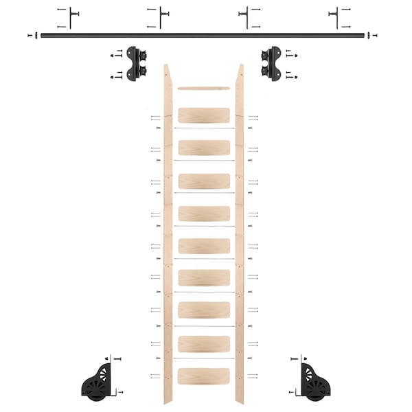 Ladder 9.92 ft. Unfinish Maple Black Rolling Kit with 8 ft. Rail
