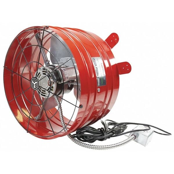 Attic Ventilator, Control Type Thermostat, Exhaust Airflow @ 0.000 in SP 3,013 cfm, Includes Shutter No, Includes Thermostat Yes, Maximum Attic Area 2,300 sq ft, Mounting Location Gable, Nameplate Voltage 120V AC, Dome Shape Not Applicable, Dome Width Not Applicable, Dome Diameter Not Applicable, Rough Opening Shape Round, Rough Opening Diameter 16 in, Rough Opening Width Not Applicable, Frequency 60 Hz, Wattage 205 W, Airflow @ 0.000 in SP 3,013 cfm
