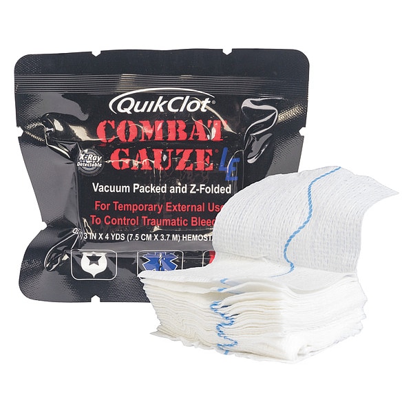 Combat Gauze, Dressing Length 4 yd, Dressing Width 3 in, Water Resistance Not Water Resistant, Sterility Sterile, Unitized Unitized, Fastener Included Fastener Not Included, Number of Units Included 1, Package Height 5 in, Package Width 5 1/2 in, Package Length 5/8 in, Compatible Manufacturer Part Number 80-0168, 80-0498, 80-0499, 80-0501, 80-0565, 80-0859, 80-0870, 85-0834, 85-3131, 85-3132