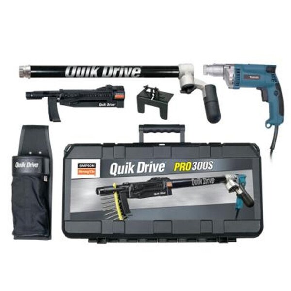 QuikDrive PRO300SM25K Auto-Feed Deck System w/ 120V Makita 2500 RPM Motor Key Features Expanded depth settings for high-density floORg materials. Reversible and replaceable non-skid teeth. Uniform toenailing and countersink on slick surfaces. Sure-grip guide tube increases stability for a broad range of screws. Decking nose clip positions the screw on the deck board and centers it on the joist for an easy, uniform installation from a standing position. The patented curved collation strips U.S. Patent 7,051,875 hold the screws up and away from the work surface, making moving and positioning the tool easier. They are also pointed on the inserted end to simplify loading. Applications Fastening Wood-to-Steel Fastening Wood-to-Wood Fastening Subfloor to Wood Decking - Wood Decking - Composite Dock and Boardwalk Truss-Ply Fastening Decking on decks and docks, subfloor to wood or steel, wall plates, stair treads, sheathing, fiber-cement siding to steel Product Includes PRO300SG2 decking attachment also sold separately Extension for stand-up driving Makita screwdriver motor Screw quiver for keeping screws at your fingertips Rugged tool case to protect your equipment on the jobsite Decking nose clip for accurate and consistent fastening Compatible Screws DSV WOOD Screw DWP WOOD SS Screw DHPD HARDWOOD Screw Trim-Head Screw, Type-17 Point Trim-Head Screw, Sharp Point Bugle-Head Wood Screw CBSDQ Sheathing-to-CFS Screw WSV SUBFLOOR Screw DCU COMPOSITE Screw