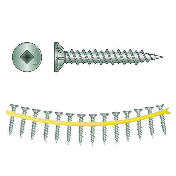 QuikDrive CB3BLG158S #10 x 1-5/8in Tile Underlayment Screw 1500ctThe CB3BLG is designed for dense fiber-cement-to-wood applications. This collated screw is used with the Quik Drive1/4 PROLDHG2 underlayment/backerboard system. The coarse-threaded CB3BLG screw features a design ideal for countersinking to provide a clean, concealed finish.Key Features 0.375in ribbed wafer head with nibs for easy countersinking #3 undersized square drive driver bit in each box; replacement bit model BIT3SU Coarse threads Type-17 point C-3 mechanically galvanized coating Straight collation ApplicationsDense fiber-cement board to wood
