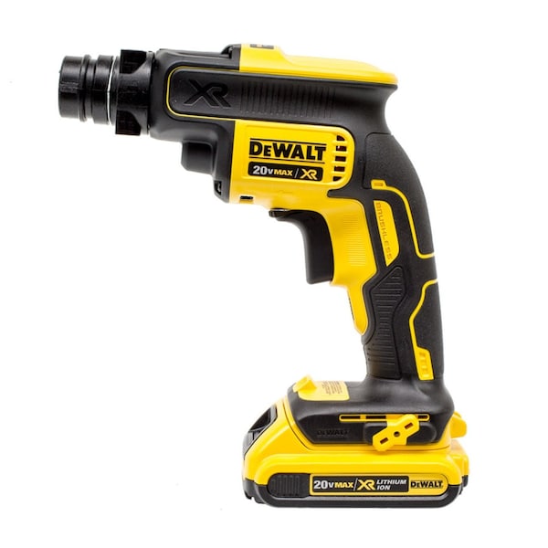 QuikDrive DCF620D2G2 DeWalt 20V 4,400 rpm Cordless Drywall Screwdriver KitFeatures & Benefits: DeWalt 4,400 rpm brushless, cordless screwdriver motor for QuikDrive Systems. This screwgun is recommended for drywall applications. It comes equipped with the DWA7G2 swivel adapter so that the drywall attachment may be rotated without having to be fully removed. QuikDrive QDPRO200G2 Drywall Attachment as shown not included. Specifications: Depth Sensitive Nose Cone: Yes No Load Speed: 4,400 RPM System: 20V MAX Tool Weight : 3.3 Drive: 1/4ft Hex Power Tool Type: Cordless Tool Length : 8.75 in. Kit Includes: 1 DCF620 20v MAX XR Li-Ion Brushless Drywall Screwgun 1 DCB112 - Multi-voltage charger 2 DCB203: 20v MAX XR Compact Li-Ion Batteries 2.0Ah 1 Bag