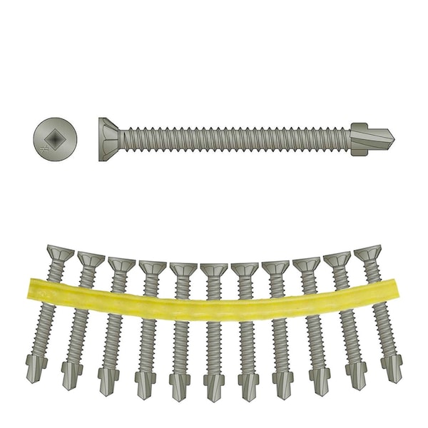 Self-Drilling Screw, #10 x 2-1/4 in, Quik Guard Coating Flat Head Square Drive