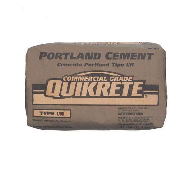 Quikrete 47 lbs. Portland cement is a high strength cement designed for a number of different applications. It can be mixed with aggregate to make base-coat stucco concrete and mortar. Quikrete 47 lbs. Portland cement gives the user versatility in the type of mix that they want to make.