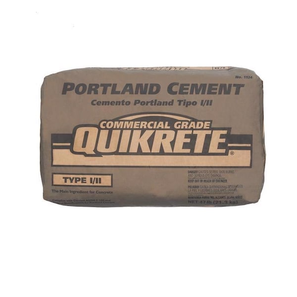 Package Size: 47, Packaging Type: Bagged, Brand Name: Quikrete, Paintable: , Product Type: Portland Type 1 Cement, Ready to Use: , Sandable: , Sub Brand: , Tintable: , Color: Gray, Applicator Included: , Indoor or Outdoor: Indoor and Outdoor, Set Time: