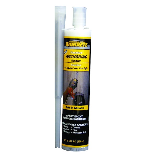 Compositions: Diglycidy Ether of Bisphenol A Quartz Silica Sand Trimethylol Ethane Triglycidy Ether Ethylene Glycol Titanium DioxideQuikrete FastSet anchoring epoxy is a gray solvent-free, low-odor, high strength, moisture insensitive, non-sag epoxy. Quikrete FastSet anchoring epoxy is ideal for vertical or horizontal applications, including anchoring bolts, threaded rods and rebar dowels into concrete and masonry substrates. Ideal for fastening in grout filled block and unreinforced masonry and seismic anchoring and bracing.
