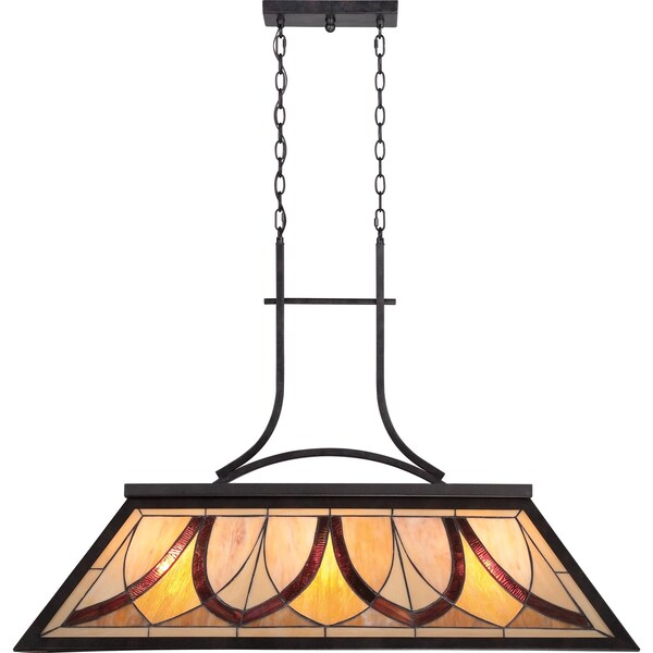 Gentle scrollwork and Tiffany style in a classic pattern brings sophistication to the Asheville Collection. The Tiffany glass is hand assembled using the copper foil method developed by Louis Comfort Tiffany. The Valiant Bronze finish anchors the traditional styling.
