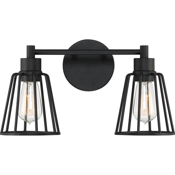 The Atticus is a vintage-inspired updated for today's modern bath. Tapered cage-like shades add an industrial touch, while the simple crossbar and deep earth black finish offers versatility. We recommend using vintage filament bulbs for maximum flair.