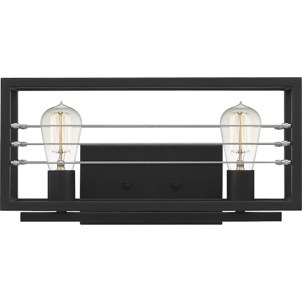 Awendaw bath lights make a bold statement with their transitional and industrial styling. The open, rectangular silhouette of these fixtures is highlighted by a Matte Black finish and sleek cable detailing. Choose from a variety of sizes in this versatile collection to personalize your bathroom lighting today. The Awendaw collection also includes a semi-flush mount and several hanging lights in an Antique Nickel finish.