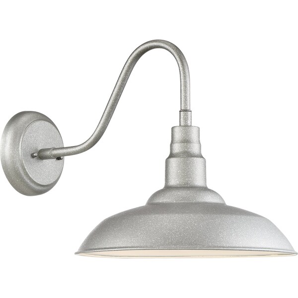 Industrial design meets classic style with the Beachside wall lanterns. The curved arm of the fixture extends the shade outward and the interior of the shade is painted white providing a larger illuminated footprint with a bright clean light. This series features integrated LED technology. The painted Galvanized finish completes the look.