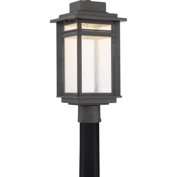 With integrated LED technology, the Beacon Outdoor Collection will coordinate perfectly with any home exterior. The Stone Black finish on the base is textured and lightly speckled highlighting the details of the fixture. The clear seedy glass glows softly with integrated LED and streamlines the design of this handsome series.