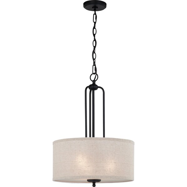 Though you can choose from a clear hammered glass shade, beige fabric shade, classic chandelier, or an airy, open-frame pendant, Blanche features a unifying style via its simple lines and traditional matte black finish. The different shapes — from flush mount to chandelier — also work well together throughout a variety of spaces.